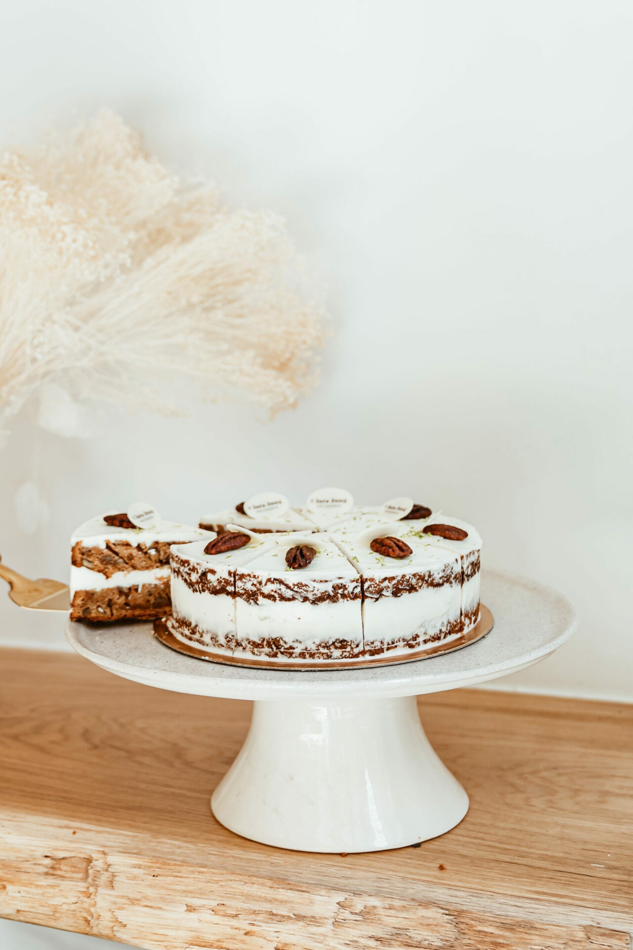 À l’intérieur de ce gâteau : Des carottes, des noix de pécan, de la muscade, du gingembre, de la cannelle, un glaçage creamcheese, des zestes de citron vert et beaucoup d’amour !