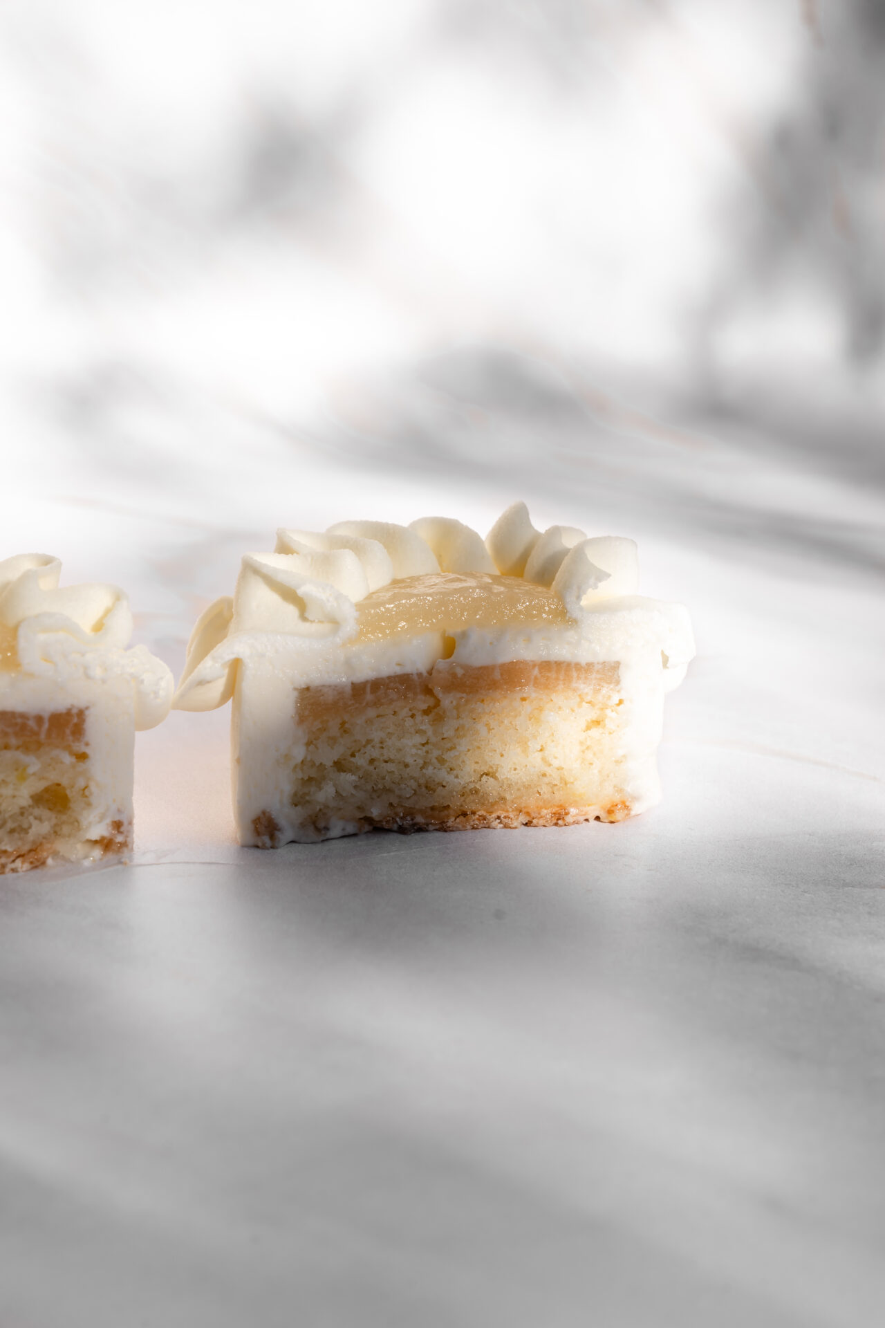 Croustillant feuillantine chocolat blanc, zestes de citron jaune